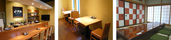 3,000円からのコース料理は2名様から予約なしでOK!店内にはJAZZが流れ、ゆったり広々としていてカウンター席もあります。デートや接待、仕事終わりの1杯を楽しみたい方におすすめです。2階は宴会場になっており、約40~50名様まで入れる完全個室のお座敷のほか、10名様までご利用可能のお座敷もご用意しております。